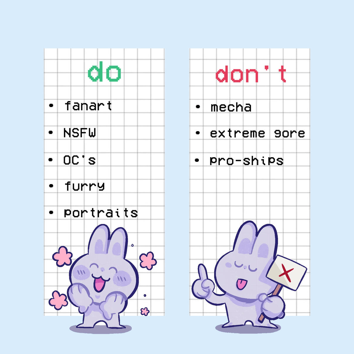 • 2 free revision. Any changes after that will be charged.• The artwork is for personal use only unless otherwise discussed.• I reserve the right to post your finished commission to my socials (with a watermark) unless specifically asked not to.• The art I create for clients cannot be used by you nor your partners for training an AI.• In case of commercial use, give me credits or add my social networks.